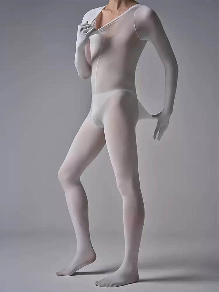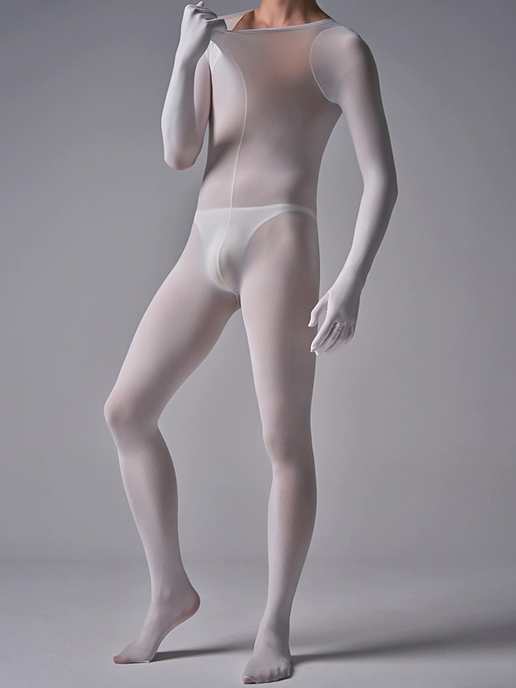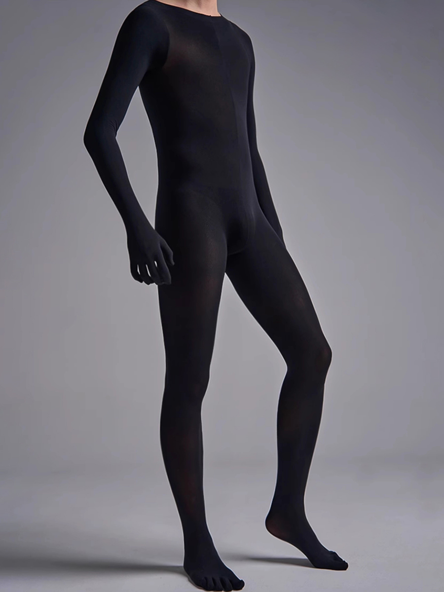 Crafted from sheer silk velvet, this all-in-one catsuit offers a seamless second-skin fit with full-body coverage, designed for men seeking a sleek and stylish bodysuit with a subtle sheer finish.